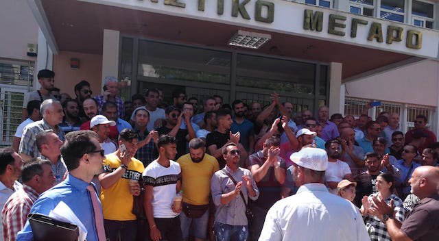 İmam ve işçiler geceyi nezarette geçirirken, 27 Haziran Perşembe günü suç üstü mahkemesine çıkarıldılar. Davayı izlemek üzere yaklaşık 80 kişilik bir topluluk İskeçe adliyesine geldi. Toplanan kalabalık arasında İskeçe Müftülüğüne bağlı din görevlileri de yer aldı. İskeçe SİRİZA Milletvekili Hüseyin Zeybek, milletvekili adayı Türkeş Hacımemiş, İskeçe Müftü Yardımcısı Ahmet Hraloğlu, İskeçe Türk Birliği Başkanı Ozan Ahmetoğlu, DEB Partisi yöneticileri ve çok sayıda soydaş da adliye önünde toplananlar arasında yer aldı.