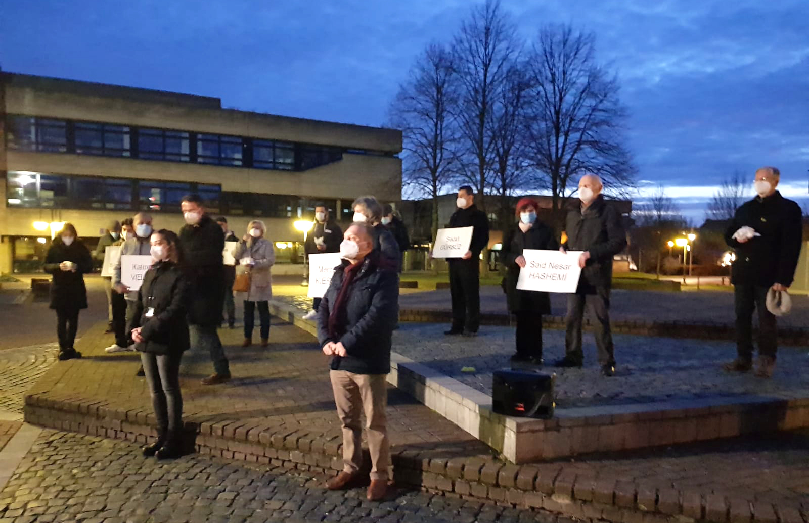 Almanya’nın Hanau kentinde 19 Şubat 2020’de 9 kişinin öldürüldüğü ırkçı terör saldırısının yıl dönümünde hayatını kaybedenler için Hückelhoven şehirlerinde anma etkinliği düzenledi.