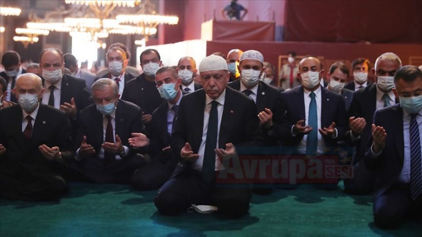 Yunanistan Yüksek Mahkemesinden emekli avukat papaz Lambros Fotopulos, Cumhurbaşkanı Recep Tayyip Erdoğan'ın Ayasofya-i Kebir Cami-i Şerifi'nde, Kitab-ı Mukaddes'teki asıllarına uygun şekilde ibadet organize ettiğini belirterek, ''Erdoğan, mütevazı bir inanan gibi Kur'an-ı Kerim okudu. Hristiyanlığın büyük bayramlarında halkıyla diz çöküp dua eden imparatorlar gibi orada bulunan diğer inananlarla diz çöktü." dedi.