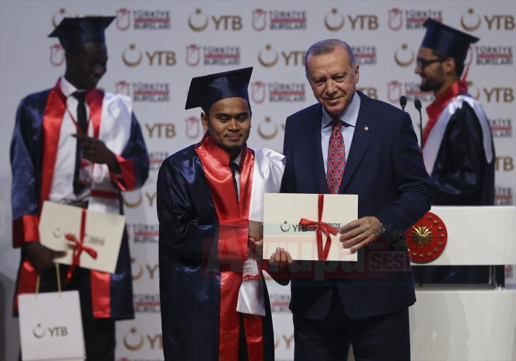 Yurtdışı Türkler ve Akraba Topluluklar Başkanlığı’nın (YTB) “Türkiye Bursları” programıyla dünyanın dört bir yanından gelerek ülkemizde eğitim alan uluslararası öğrenciler mezun oldu. Programda konuşan Cumhurbaşkanı Recep Tayyip Erdoğan, “Bu salonda geleceğin bakanlarını, başbakanlarını, siyasetçilerini, sanatçılarını, inşallah Nobel ödülleri alacak bilim adamlarını görüyorum. Rabbim yolunuzu, bahtınızı açık eylesin" dedi.
