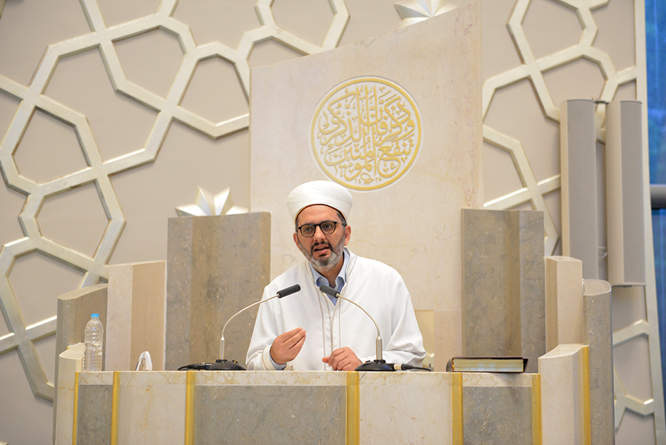 Tekbirlerle bayram hutbesini okumak için minbere çıkan Köln Merkez Camii Din Görevlisi Gökhan Uygun, Bayramlar, kardeşliğin, paylaşmanın, birbirimizi karşılıksız sevmenin ve barışın sözde kalmayıp somutlaştığı özel ve güzel günler olduğunu söyledi.