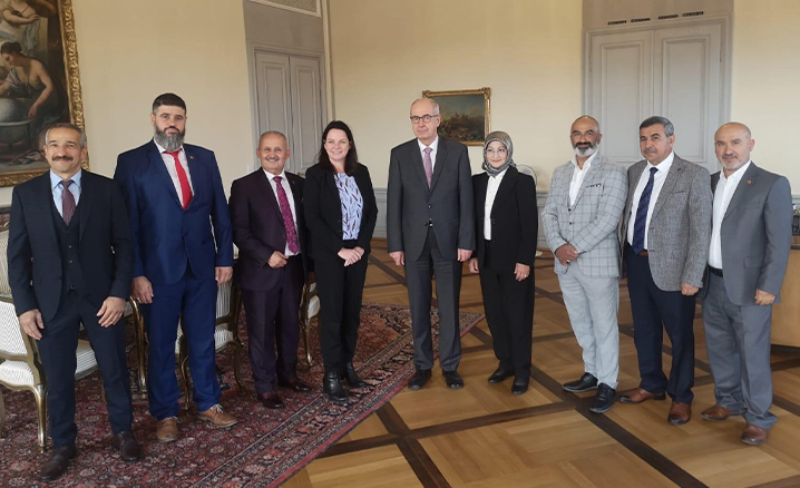 Kuzey Bavyera Eyalet Birliği başkan yardımcıları Cemil Kimyacıoğlu ve Gülay Arık, yönetim kurulu üyeleri Refet Avcı, Kemal Sapkaya ve Ali Taş ile Ansbach Camii dernek başkanı Mehmet Şimşek ve Fürth Camii din görevlisi Seyfettin Çoban’dan oluşan DİTİB heyeti, emekliye ayrılacak olan Frankonya Valisi Dr. Thomas Bauer’i makamında ziyaret etti.