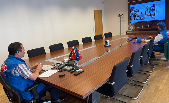 DİTİB ve TDV işbirliğinde “Kurbanını Paylaş Kardeşinle Yakınlaş” temasıyla yürüttülen kurban kesim organizasyonunda kurban bağış paketi dağıtmak üzere görev yapacak gönüllüler çevrimiçi toplantıda bir araya geldi.