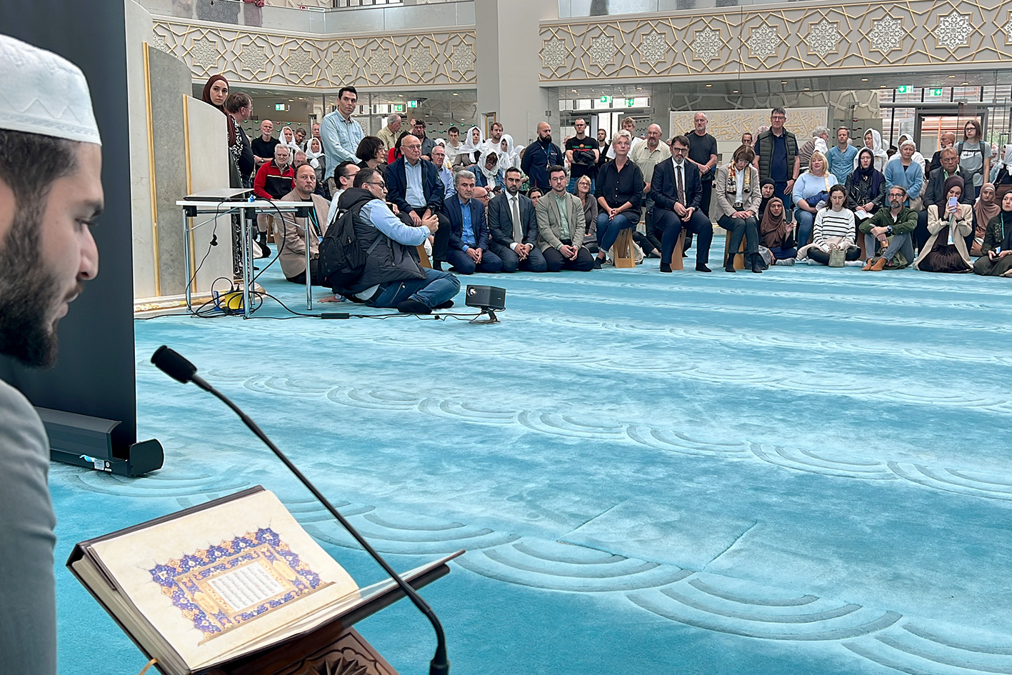 Köln DİTİB Merkez Camii’nde bu yıl ki Açık Cami Günü açılış programı; insana, huzur ve huşu veren caminin görkemli kubbesinin altında Kur’an-ı Kerim tilavetiyle başladı.