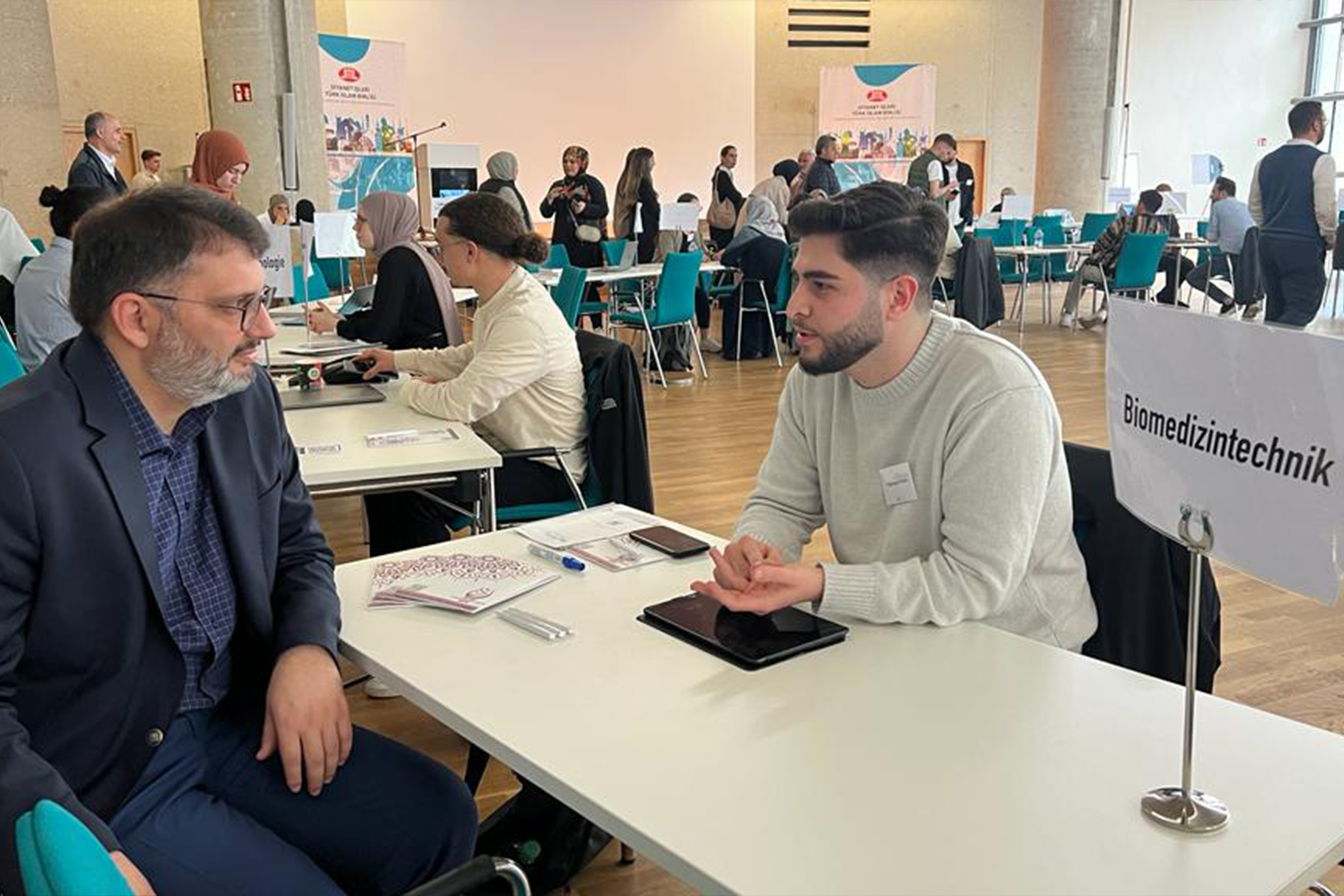 Diyanet İşleri Türk İslam Birliği (DİTİB) Genel Merkez Konferans Salonu’nda bu yıl 6.’ıncısı düzenlenen Öğrenci Fuarı’nda (DİTİB Studentenmesse), Almanya’nın farklı üniversitelerinde okuyan öğrenci ve mezunları, bölümlerini tanıtmak amacıyla stand kurdu. Öğrencilerin akın ettiği fuarda, üniversiteye hazırlanan öğrencilere hayallerindeki bölümlerin seçiminde hem yol gösterildi, hem de bölümleri tanıma imkanı sunuldu.