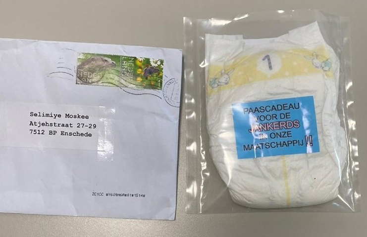 İslam düşmanı kişiler tarafından caminin posta kutusuna mektup gönderildiğini söyleyen Biçici, “Camimize bir zarf içerisinde bebek bezi ve peygamber efendimizi aşağılayıcı bir de karikatür içerikli bir mekutup gönderildi. Hollanda'da ibadet özgürlüğüne uygumayan bu mektubu yerel yetkililerle ve emniyetle paylaştık.” ifadelerini kullandı.