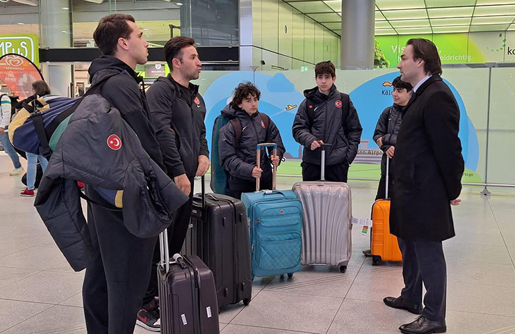 Köln Başkonsolosu Al, Türkiye Milli Tenis Takımını Köln Havalimanı'nda karşıladı