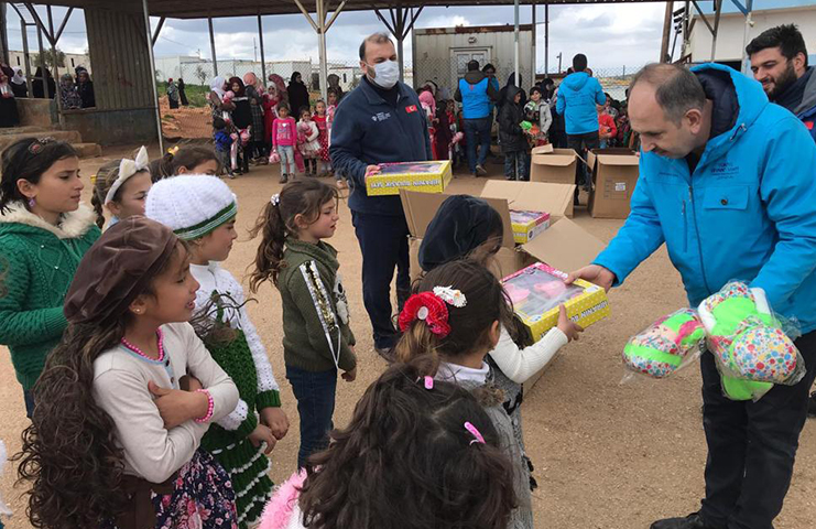 Türkiye Diyanet Vakfı Aksaray Şubesi, “Bir Yetim Bin Tebessüm” temasıyla başlattığı yardım kampanyası kapsamında Suriye’deki yetim kamplarına 5 oyun parkı ve 15 bin oyuncak hediye etti.