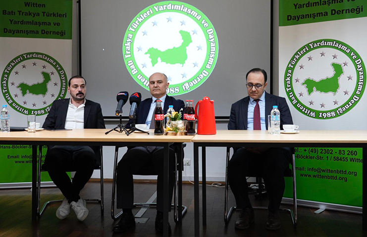 Essen Başkonsolosu Taylan Özgür Aydın, konuşmasında merhum Dr. Sadık Ahmet'i rahmetle anarak başladı. Aydın, “Bin cihana değişmem şu öksüz Türklüğümü, Dr. Sadık Ahmet’in sinevizyonu çok değerliydi, çünkü o günleri hatırlamak bakımından bizim için büyük anlam taşıyor” dedi. Batı Trakya Müslüman Türk azınlığının direnişine değinen Aydın, “Batı Trakya Müslüman Türk azınlığının milli kimliğini inkara kalkışanlara karşı birlik ve beraberlik içindeki dik duruşu, Türk tarihinin onurlu sayfalarında yerini almıştır” şeklinde konuştu.