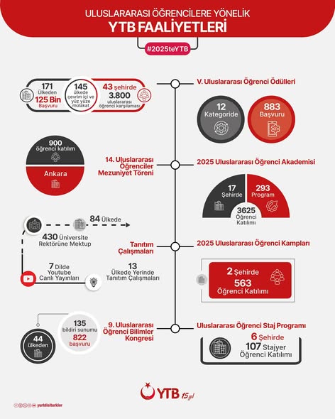 Ankara, İstanbul ve Edirne ofislerinin koordinasyonunda; kültür-sanat etkinliklerinden kariyer planlamasına, ülke günlerinden tematik gezilere kadar binlerce faaliyetin hayata geçirildiğini ifade eden Turus, Türkiye’de geçirilen her yılın öğrenciler için yaşanan ve taşınan bir Türkiye hikâyesine dönüştüğünü kaydetti.